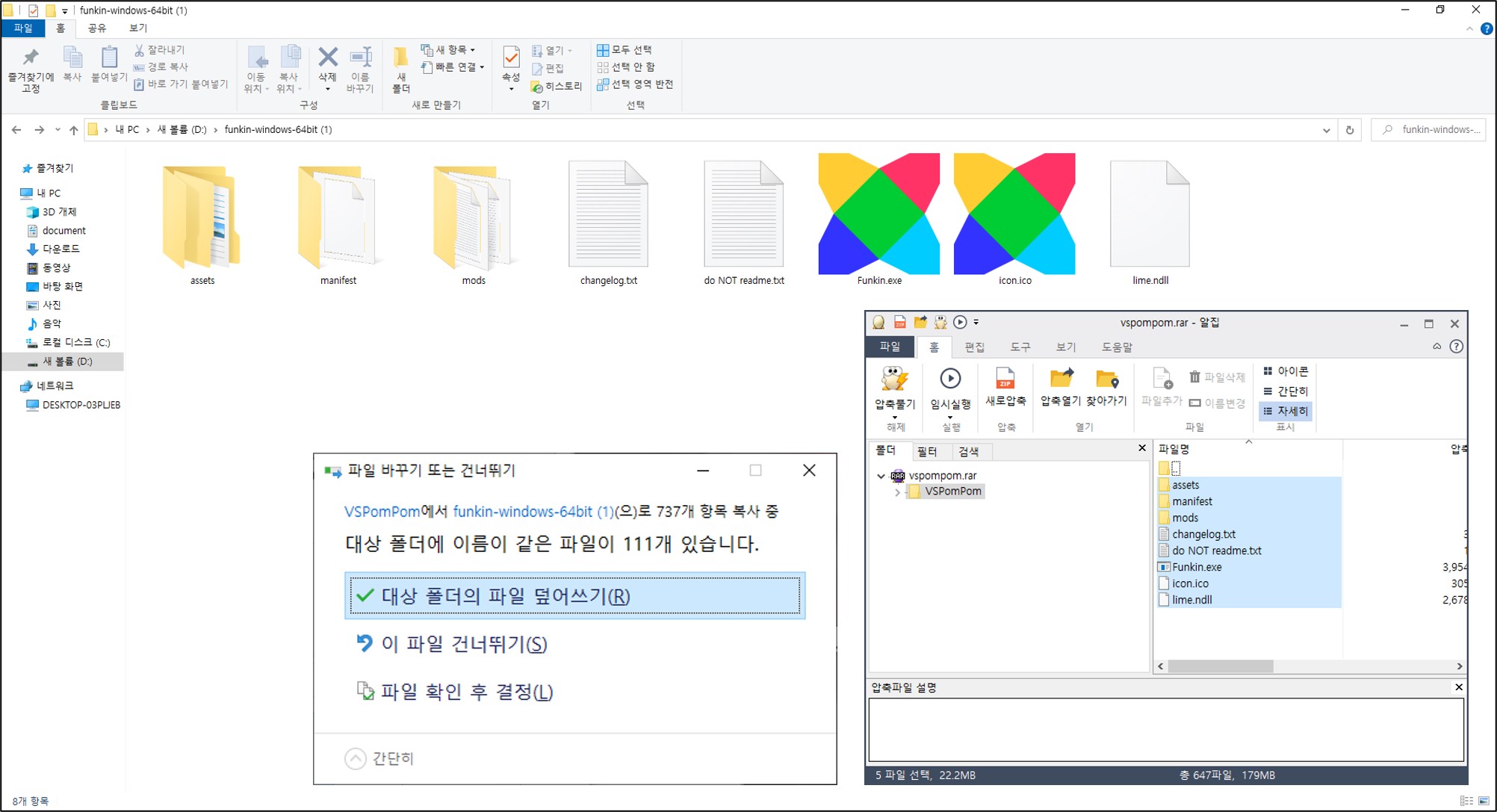다운받은 폼폼 모드 파일을 프라이데이 나이트 펌킨이 설치된 풀더안에 압축풀기 및 덮어쓰기를 진행합니다. (게임을 종료한 상태에서 붙혀넣기를 해야 정상적으로 적용됩니다.) 프나펌 실행 파일이 없다면 minepuls.tistory.com/1704 이 링크를 클릭해 다운로드 받아주세요.