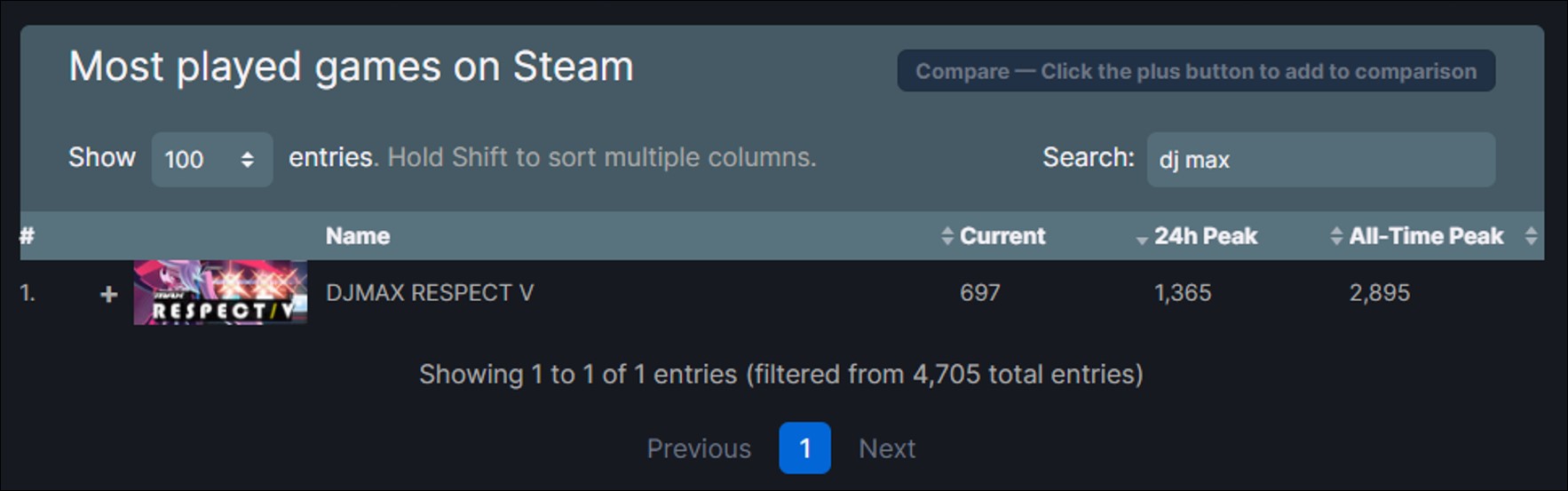 2. Search 옆 입력란에 동접 수를 확인하고 싶은 게임을 영문으로 입력합니다.