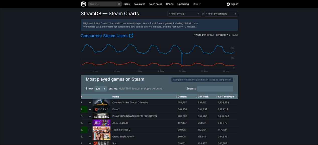 PC 컴퓨터에서 패키지 게임을 플레이한다면 대부분 스팀을 통해 플레이합니다. 그래서, 스팀 동접자 순위 통계를 확인함으로써 어떤 게임이 인기가 있는지 쉽게 확인할 수 있는데요, 오늘은 이러한 스팀 동접자 통계를 쉽게 보는법과 확인할 수 있는 사이트를 소개해드릴까 합니다.