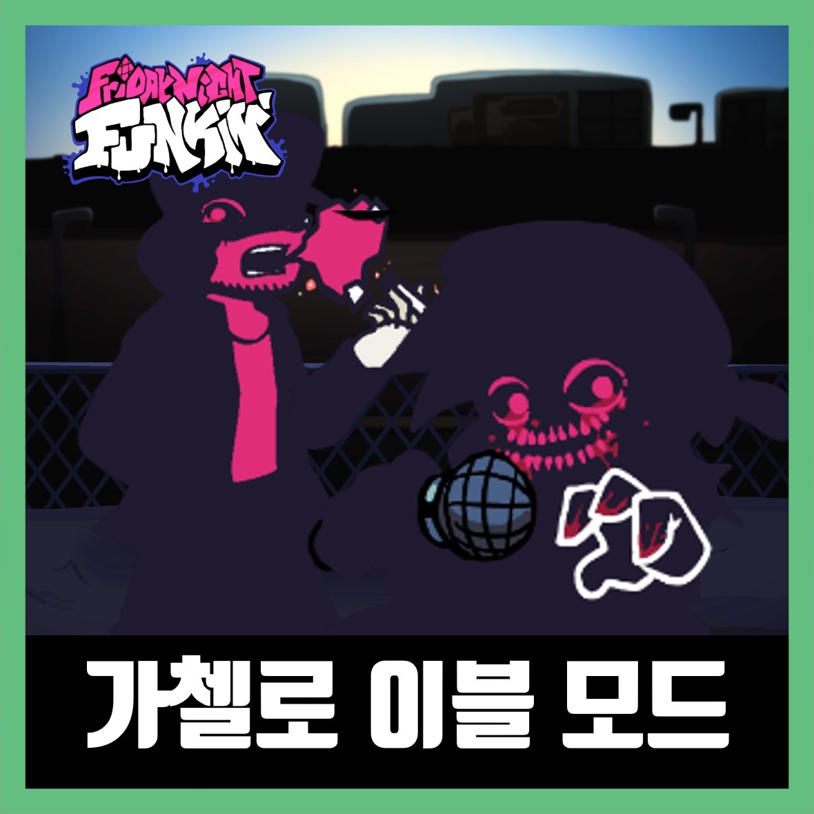 프라이데이 나이트 펌킨 가첼로 이블 모드는 가첼로 모드와 이블모드를 합친 3차 창작 모드로 바이러스에 감염된 가첼로 아저씨와 보이프렌드, 걸프렌드와 함께 프나펌을 플레이 해볼 수 있는 모드입니다.