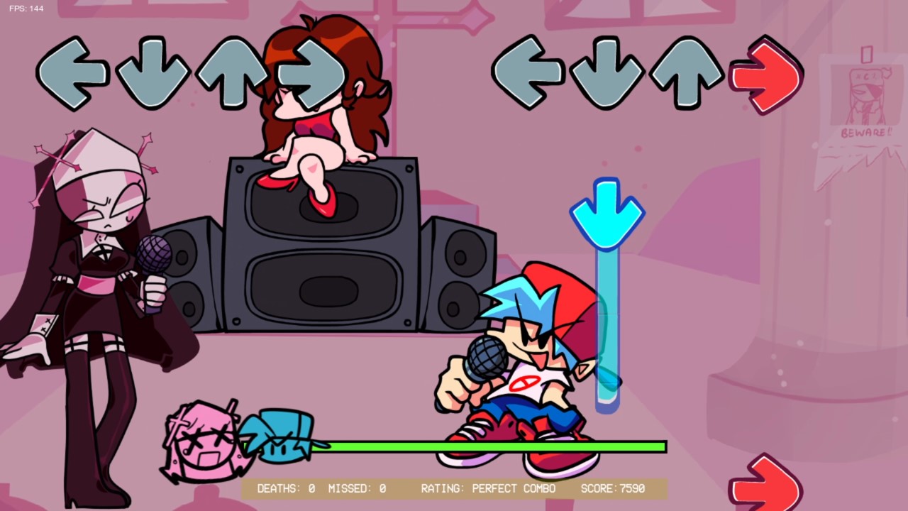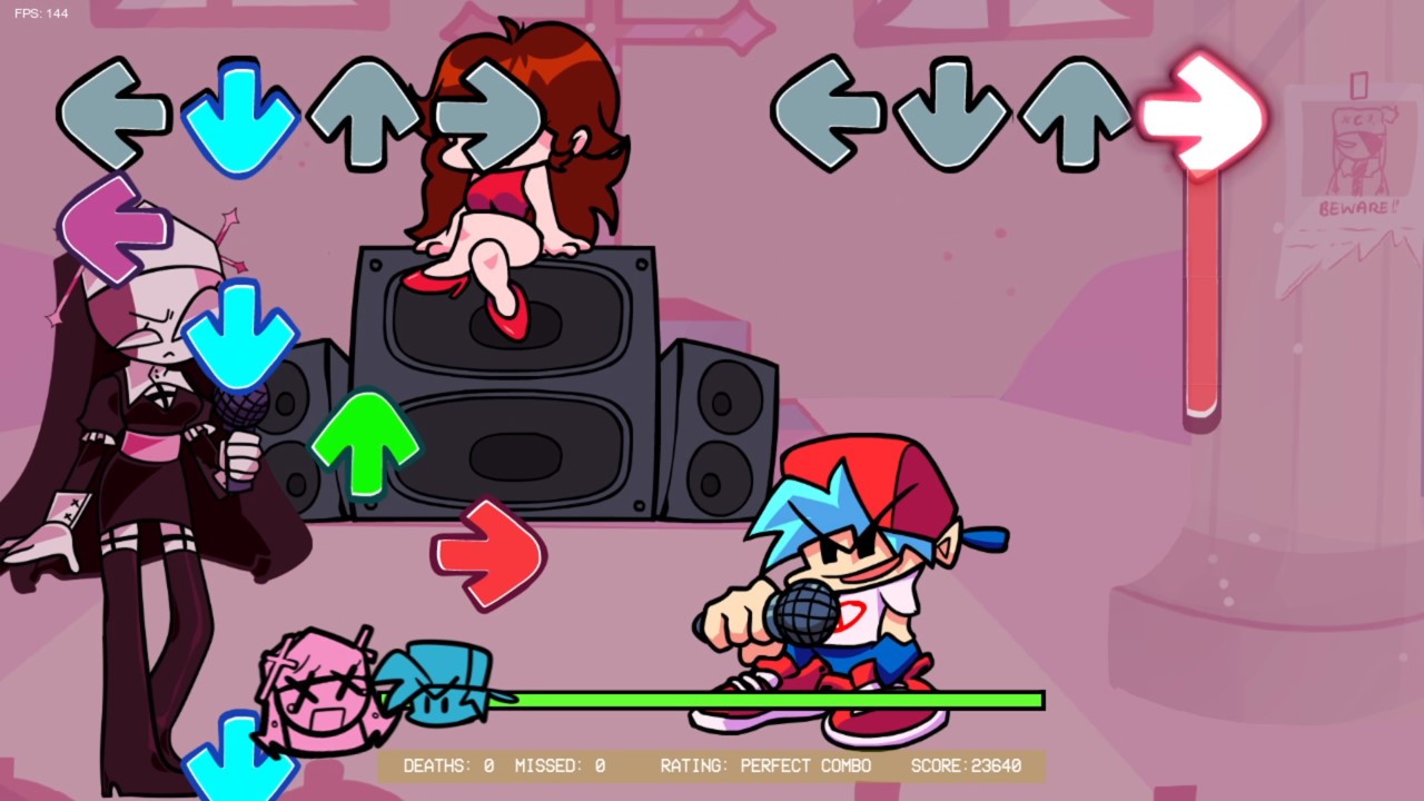 압축해제 및 덮어쓰기가 끝났다면 프나펌 실행파일을 더블클릭해 프라이데이 나이트 펌킨 사르벤테 ugh 모드를 실행할 수 있습니다. 사르벤테 ugh 모드는 프리플레이에서 Worship 하드 난이도를 선택해 플레이할 수 있습니다.