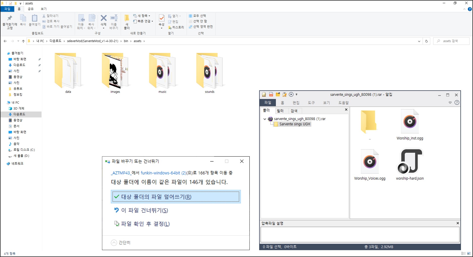 다운로드 받은 모드를 압축해제하면 안에 .ogg 음악파일 2개와 .json 파일 1개가 있을텐데, .ogg 파일 2개는 assets -> music 폴더에 붙혀넣기, 덮어쓰기를 .json 파일은 assets -> data -> worship 폴더에 붙혀넣기 합니다. 서번트 실행파일은 꼭 필요하며 https://minepuls.tistory.com/1858 이 링크를 클릭해 다운로드 받을 수 있습니다.