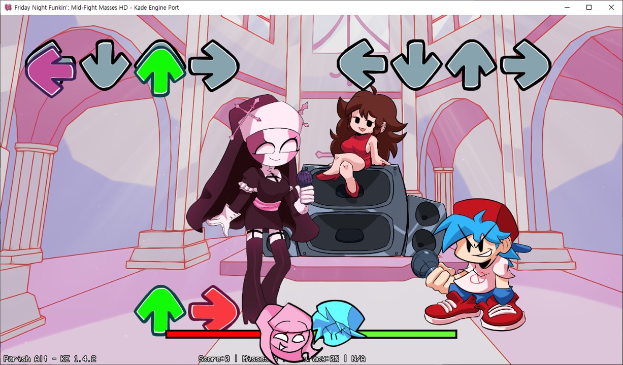 압축해제 및 덮어쓰기가 끝났다면 프나펌 실행파일을 더블클릭해 프라이데이 나이트 펌킨 사르벤테 HD 모드를 실행할 수 있습니다. 사르벤테 HD 모드는 스토리 모드에서 추가된 주차를 선택해 플레이할 수 있습니다.