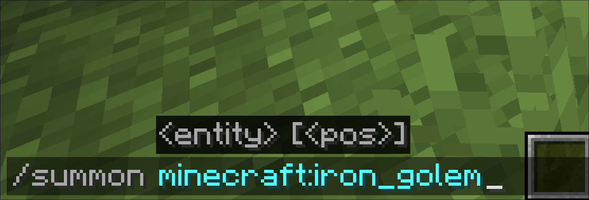 추가로 나는 위와같은 방법으로 천천히 철골렘을 만들고 싶지 않고, 치트를 사용하여 바로 철골렘을 소환하고 싶다는 분들을 위해 철골렘을 소환하는 명령어도 알려드리겠습니다. 채팅창에 "/summon minecraft:iron_golem"을 입력하시면 철골렘이 자신의 주변에 소환됩니다. 다만 1.15.2 버전 기준이므로 1.5.2 버전같은 하위버전에서는 명령어가 다를 수 있습니다.