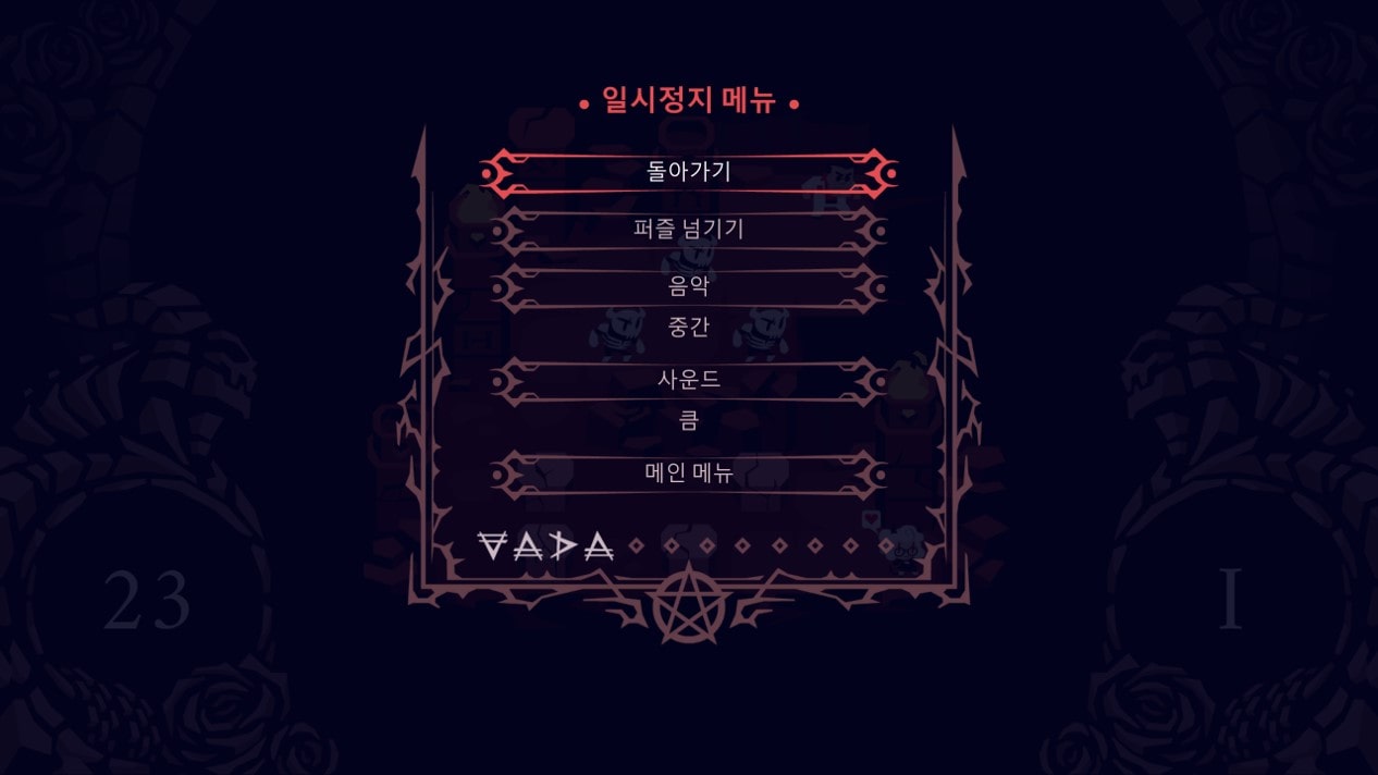 참고로 퍼즐을 안풀고 게임을 클리어하는 방법도 있습니다. 게임 진행도중 ESC를 누른 후 퍼즐 넘기기를 클릭하면 바로 다음 스테이지로 넘어가게 됩니다. 만약 플레이가 아닌 스토리만 확인해보고 싶다면 이 방법으로 빠르게 클리어하는 것도 하나의 방법일 것 같습니다.